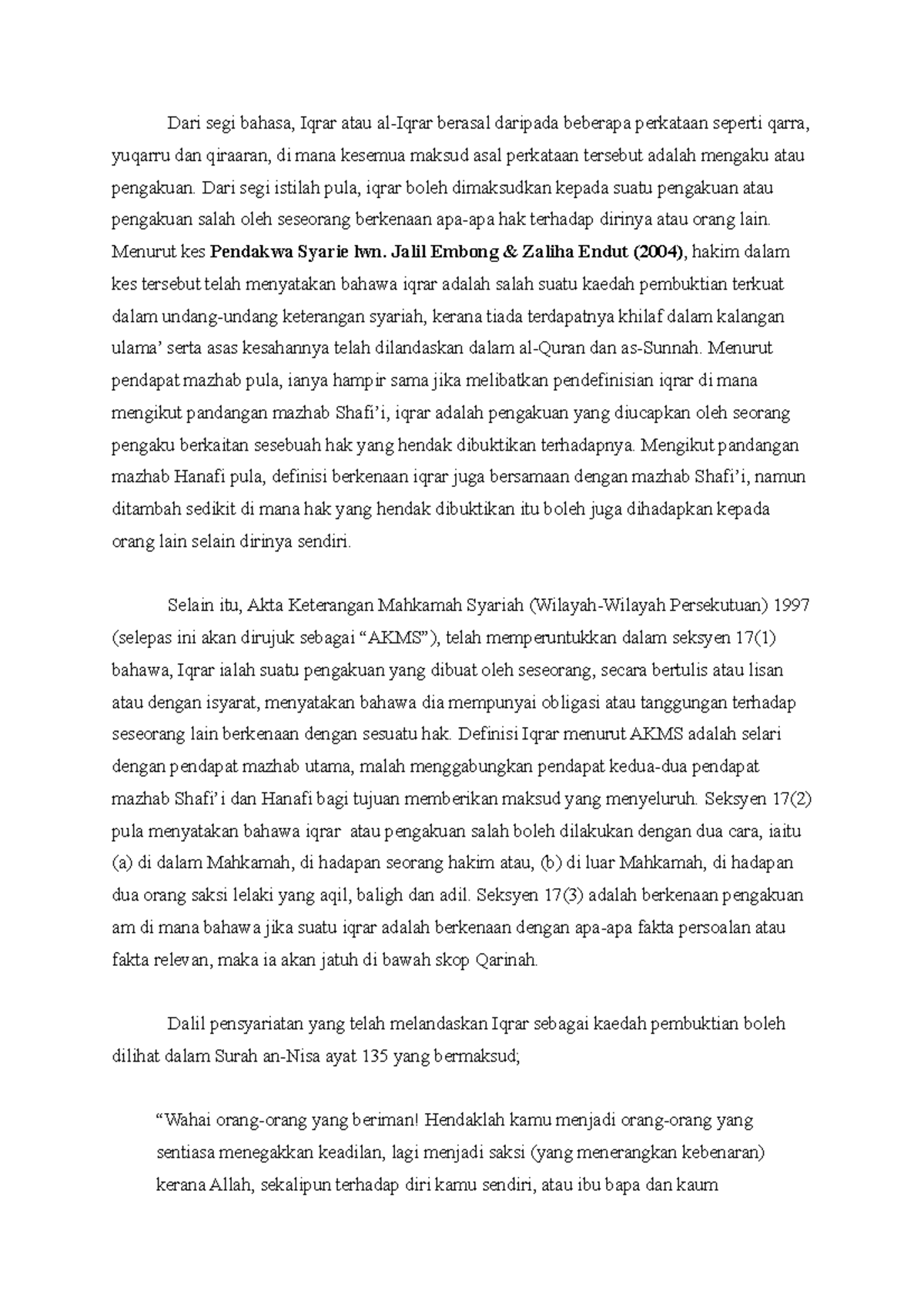 Lafaz Iqrar Pengakuan Salah Dan Pengakuan Confession Admission Dari Segi Bahasa Iqrar Atau Studocu